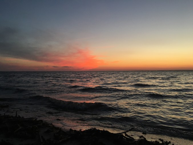 The air is somehow both cool and warm as I breathe the saline scent of ocean air into my lungs. There’s no one in sight when I scan the horizon, but I do not feel alone. In fact, I feel more accompanied than I ever have been. The sunrise is welcomed, casting slightly different shades of orange and gold than it did when it left the day before. I drift off into contemplation…
